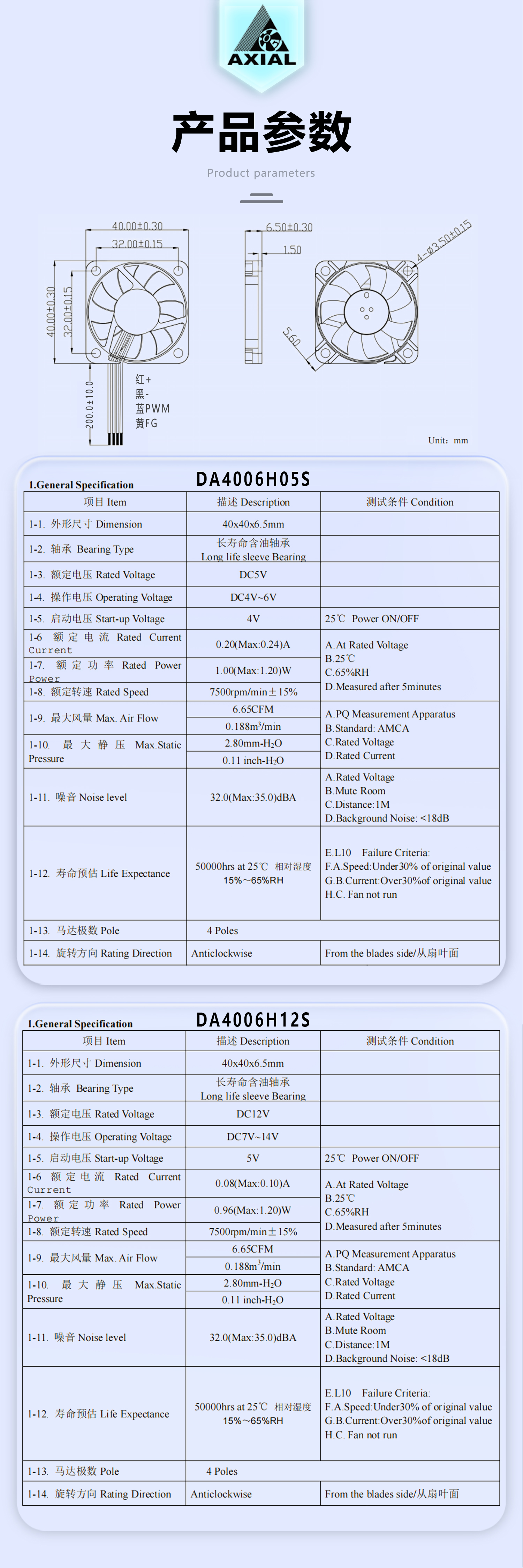 AXIAL风扇规格参数可选,也可依据客户需求定制: