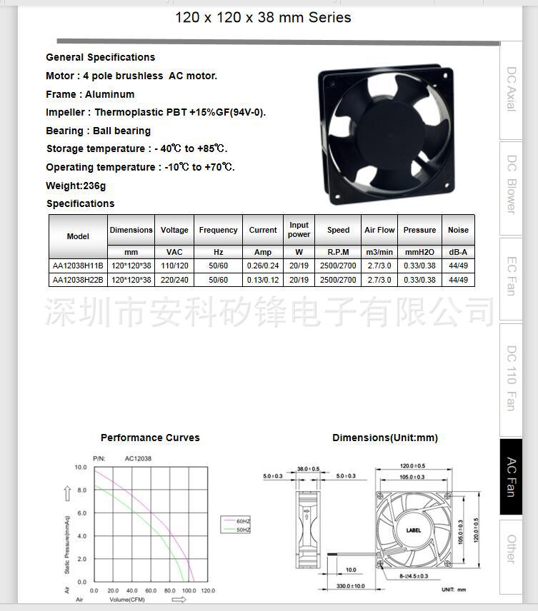 AC12038散热风扇,AC电焊机散热风扇,AC12038小型轴流风机