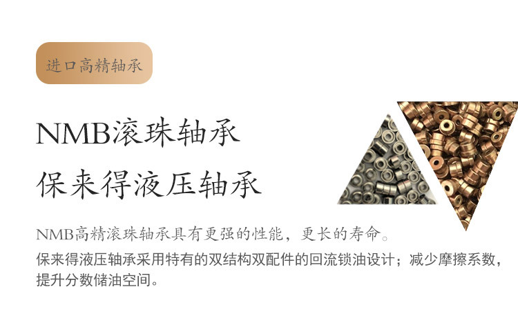 2. 噪音低/动平衡的综合性价比(日本原技术/装配件等同中国台湾品牌的价值)。
