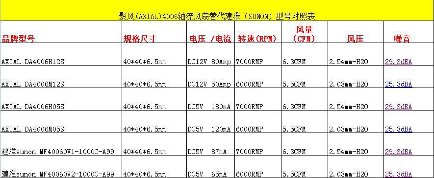 的了解和对比特附上该型号与其他品牌风扇型号参考对照表,仅供客户选型参考。